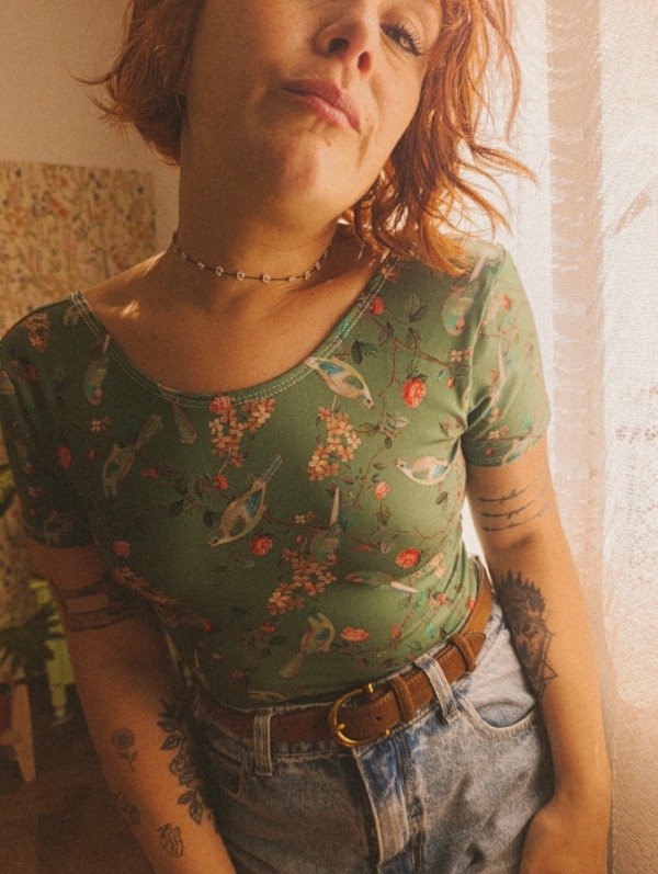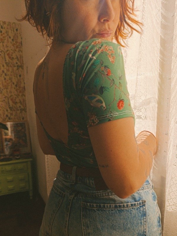 Esta hermosa remera esta confeccionada en modal con lycra. La tela es elastizada y se super adapta al cuerpo.