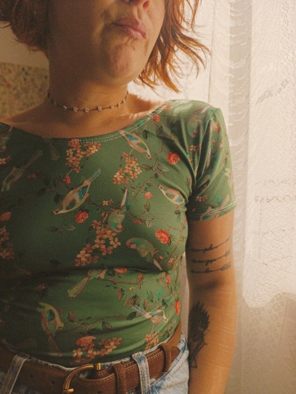 Esta hermosa remera esta confeccionada en modal con lycra. La tela es elastizada y se super adapta al cuerpo.